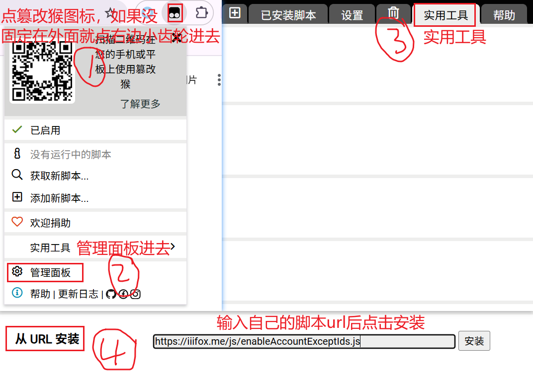 你只需要使用篡改猴:管理面板——实用工具——从URL导入,输入上面的url地址即可。
